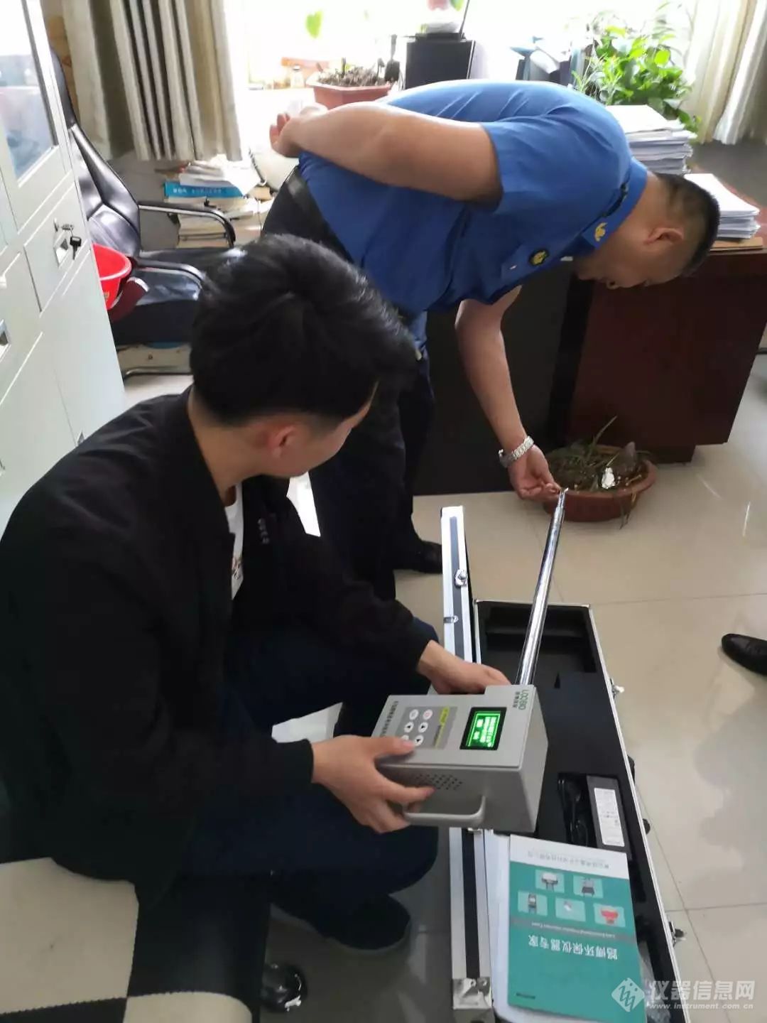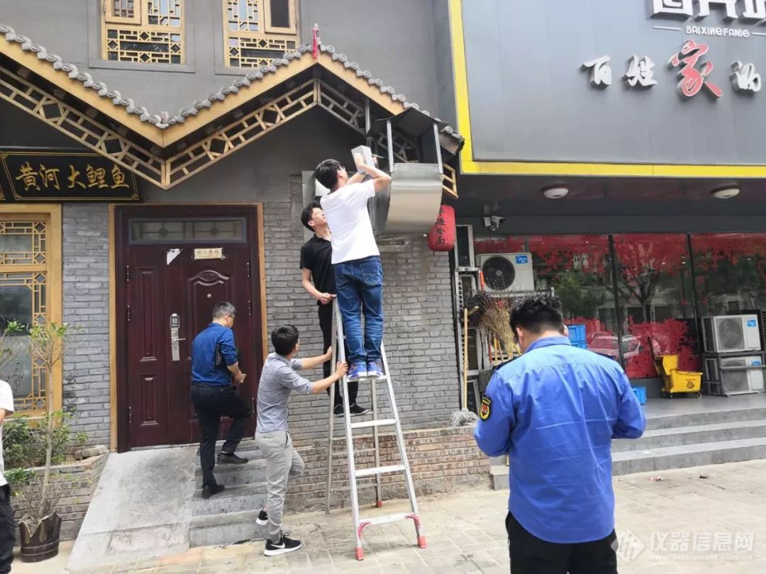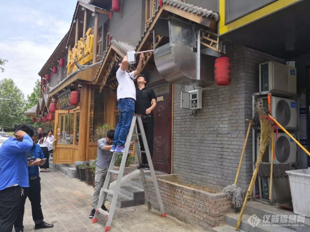 青島路博環(huán)保員工針對油煙排放情況進行檢測